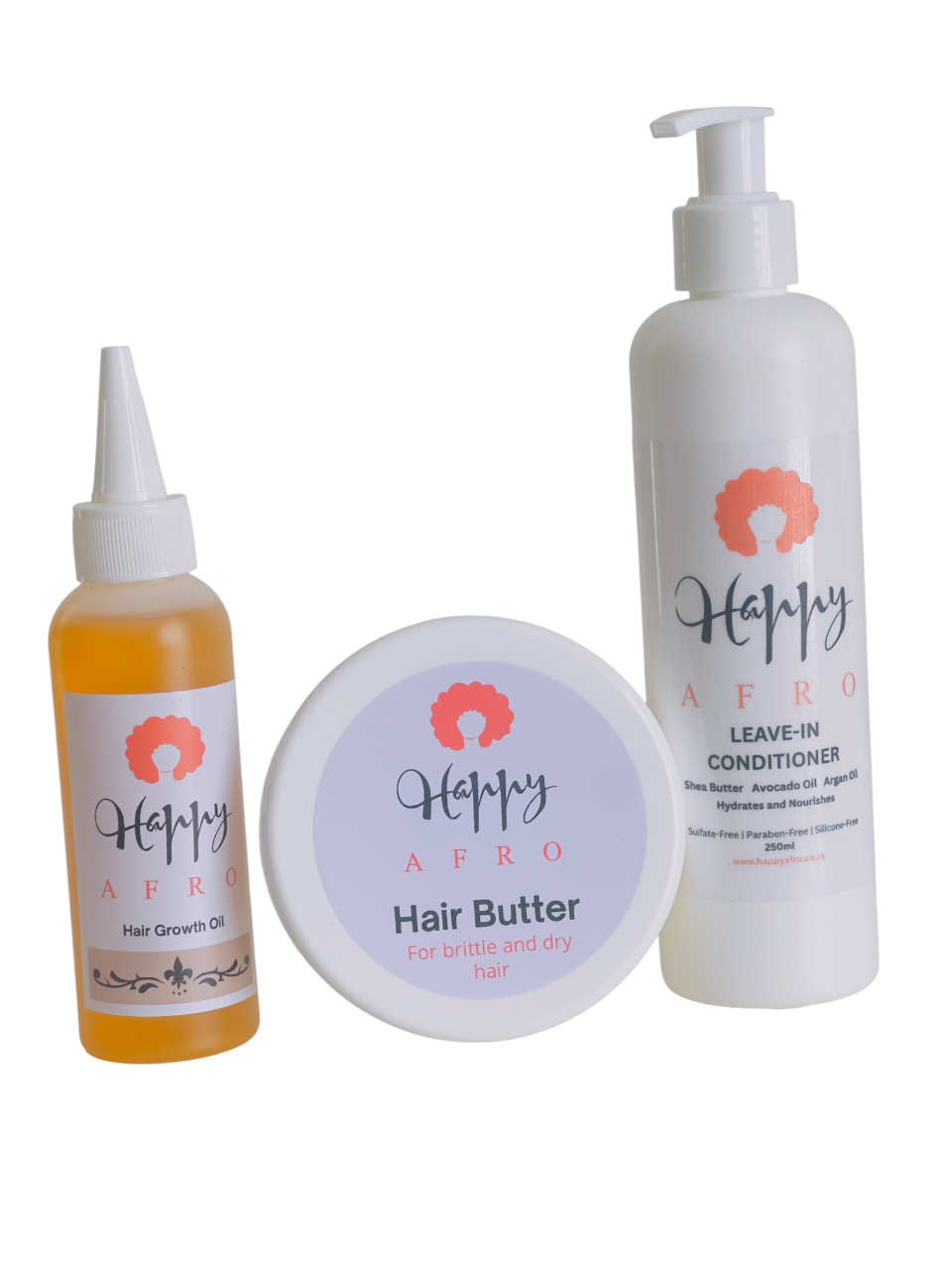 Get all 3 products and save! Leave-in Conditioner 250ml + Hair Butter 125ml + Growth Oil 100ml R470
